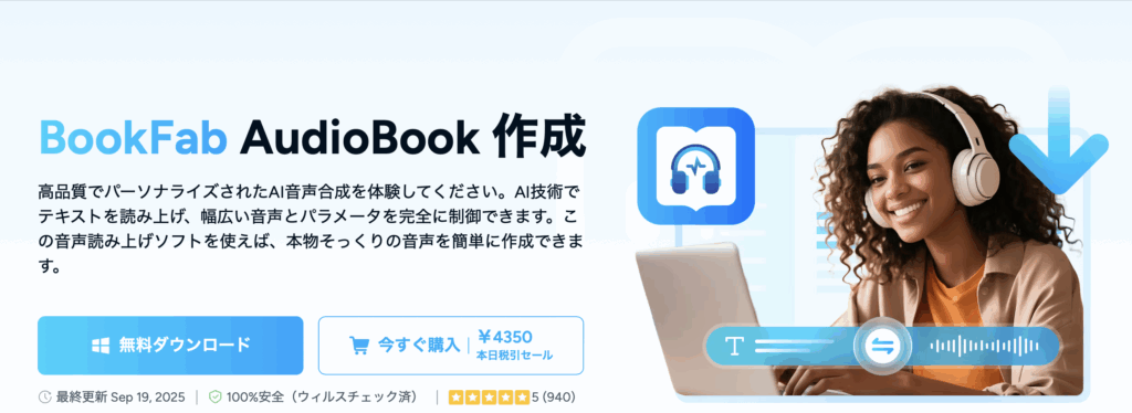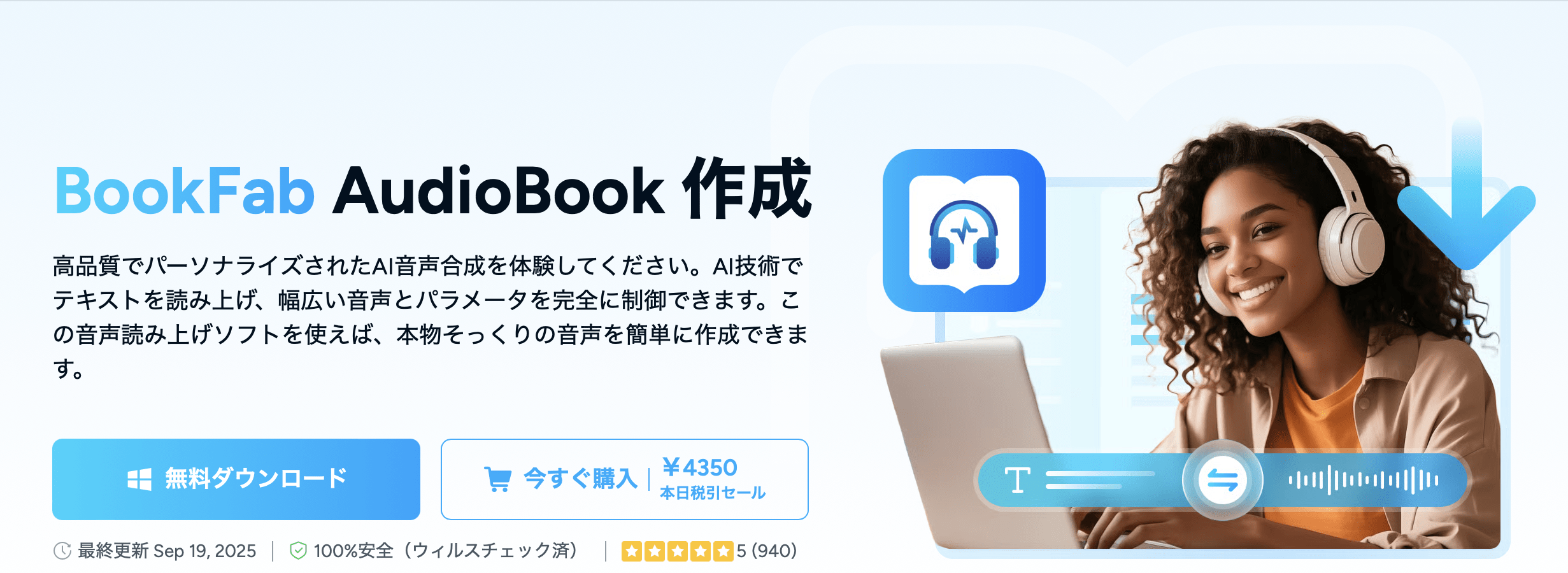 BookFab AudioBook作成はAIの力で記事にナレーションをつけたりEPUB電子書籍をオーディオブック化することができるソフトウェアです。