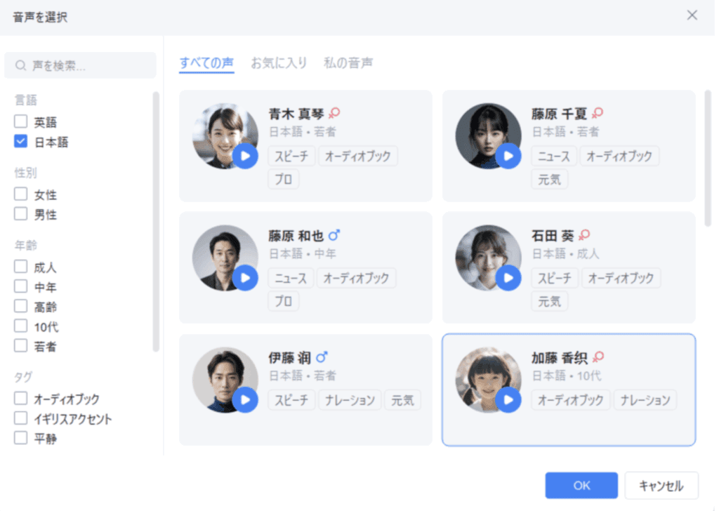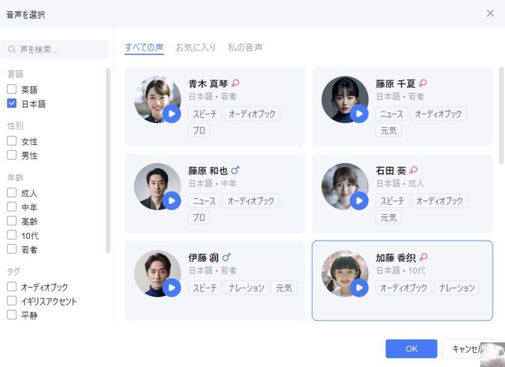 しっくりとくるAI音声がない人はこちらを試してみてもいいかもしれません。