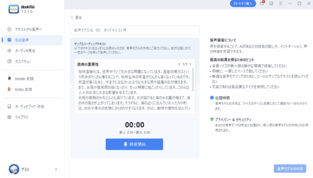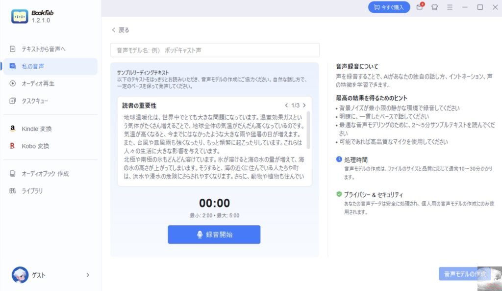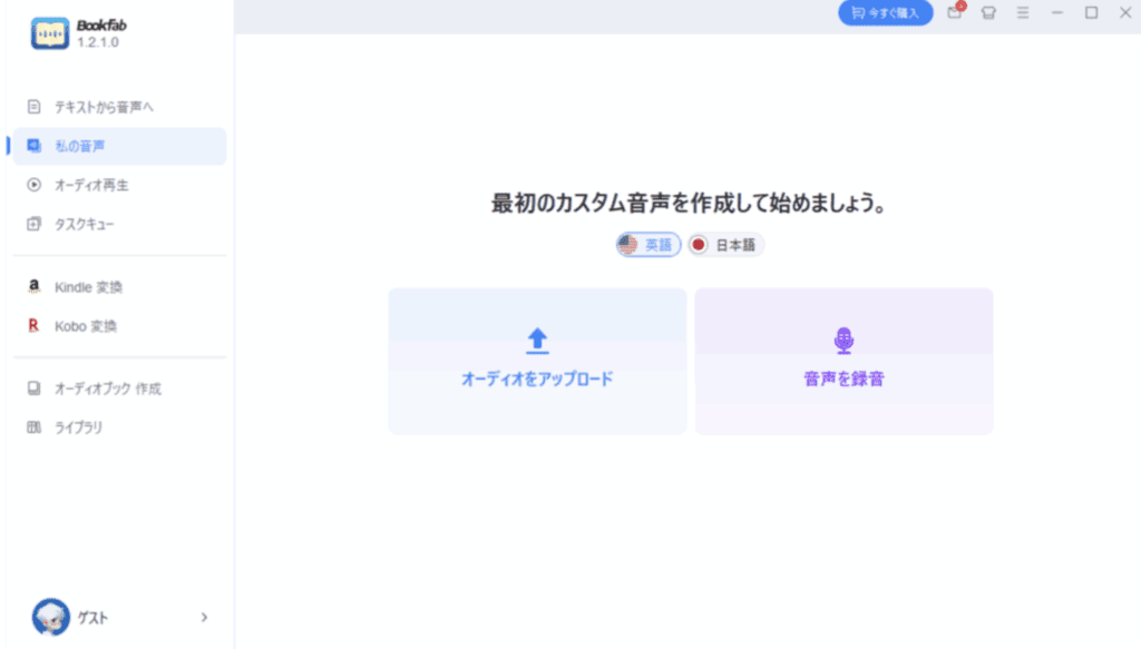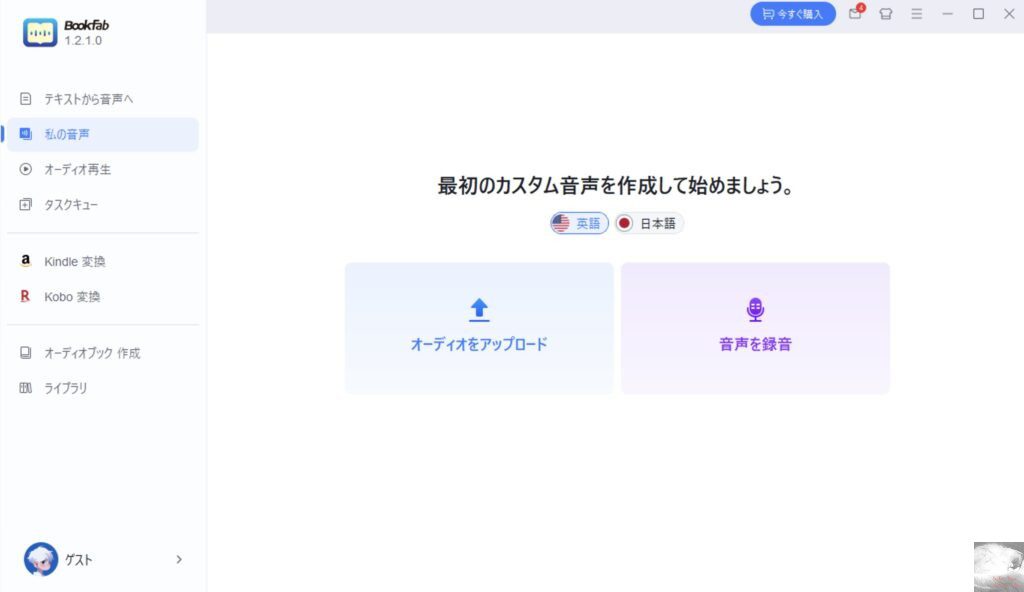 デフォルトで用意されているAI音声だけでなく、自分の声をベースにカスタム音声を作成できる点もBookFab AudioBook作成の特徴です。