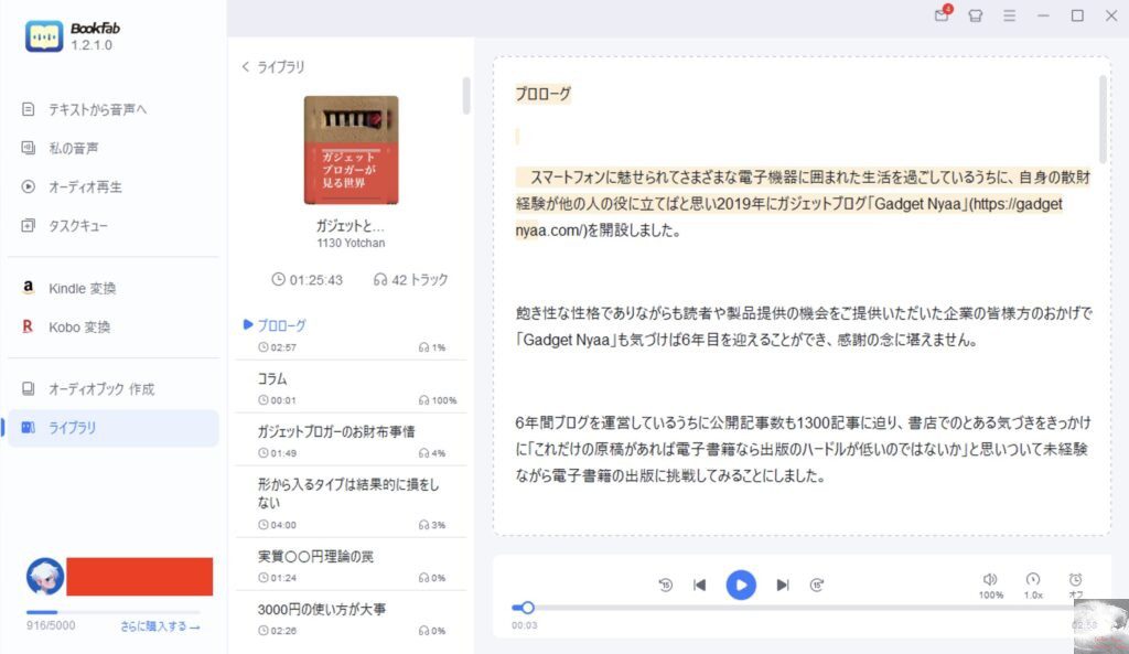 別途『BookFab Kindle変換』や『BookFab kobo変換』を用いることでKindleやkoboで購入した電子書籍をオーディオブックにすることができるので気になる方はチェックしてみてください。
