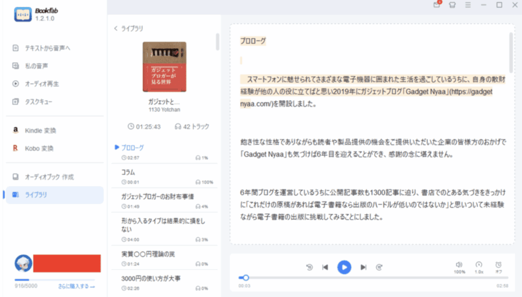 BookFab AudioBook作成でテキストにナレーションをつけてみるとこんな感じになりました。