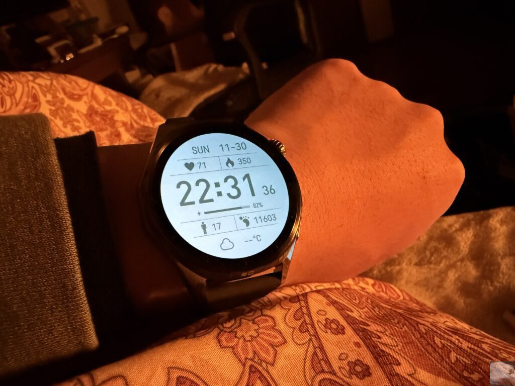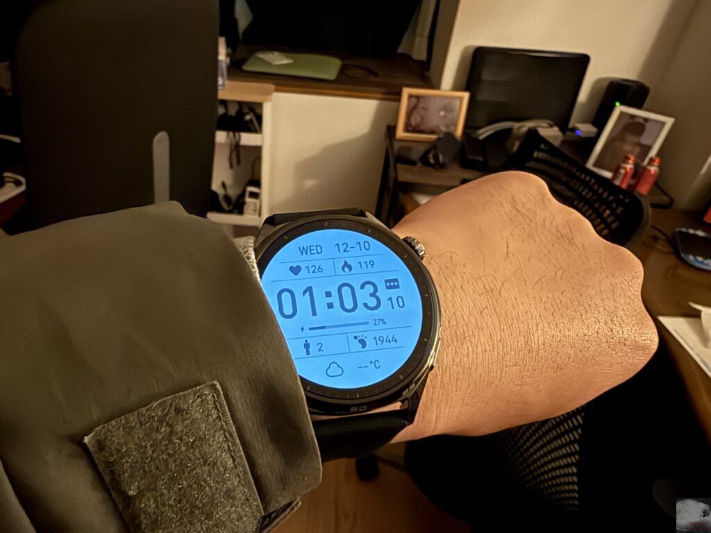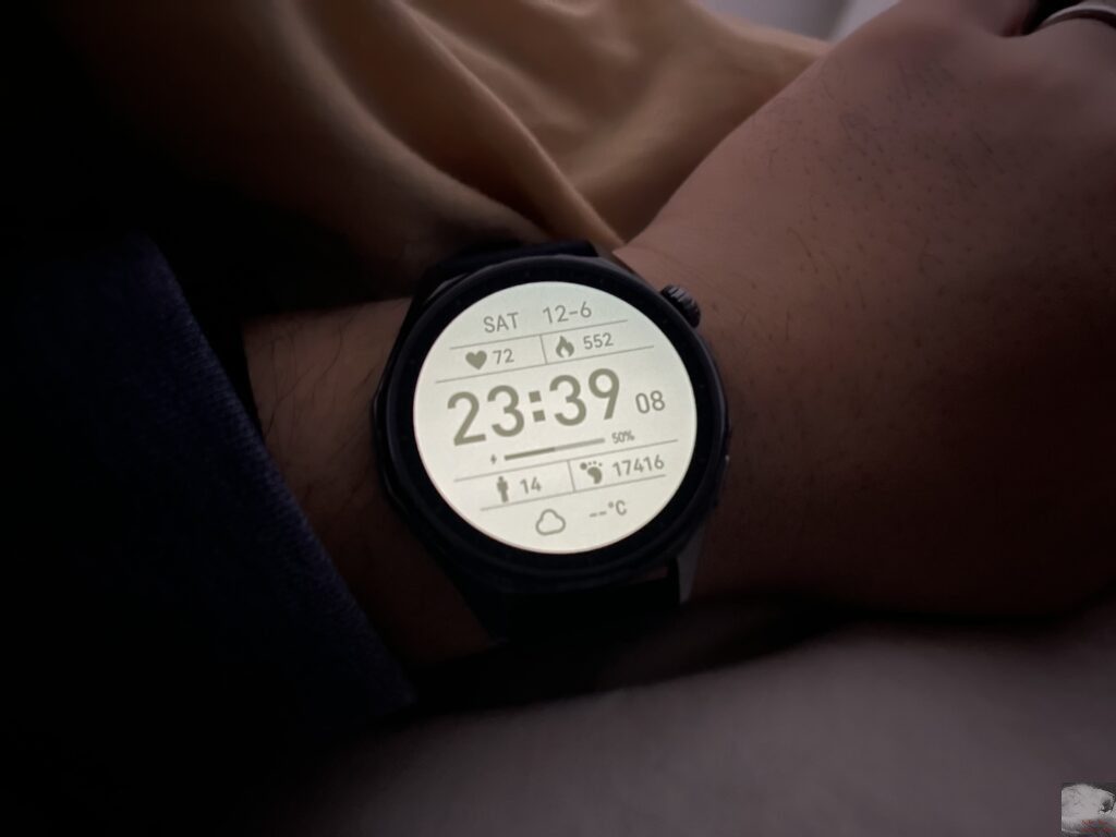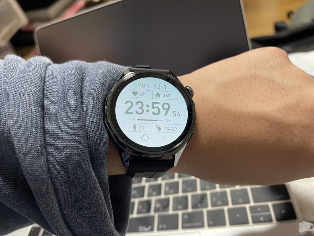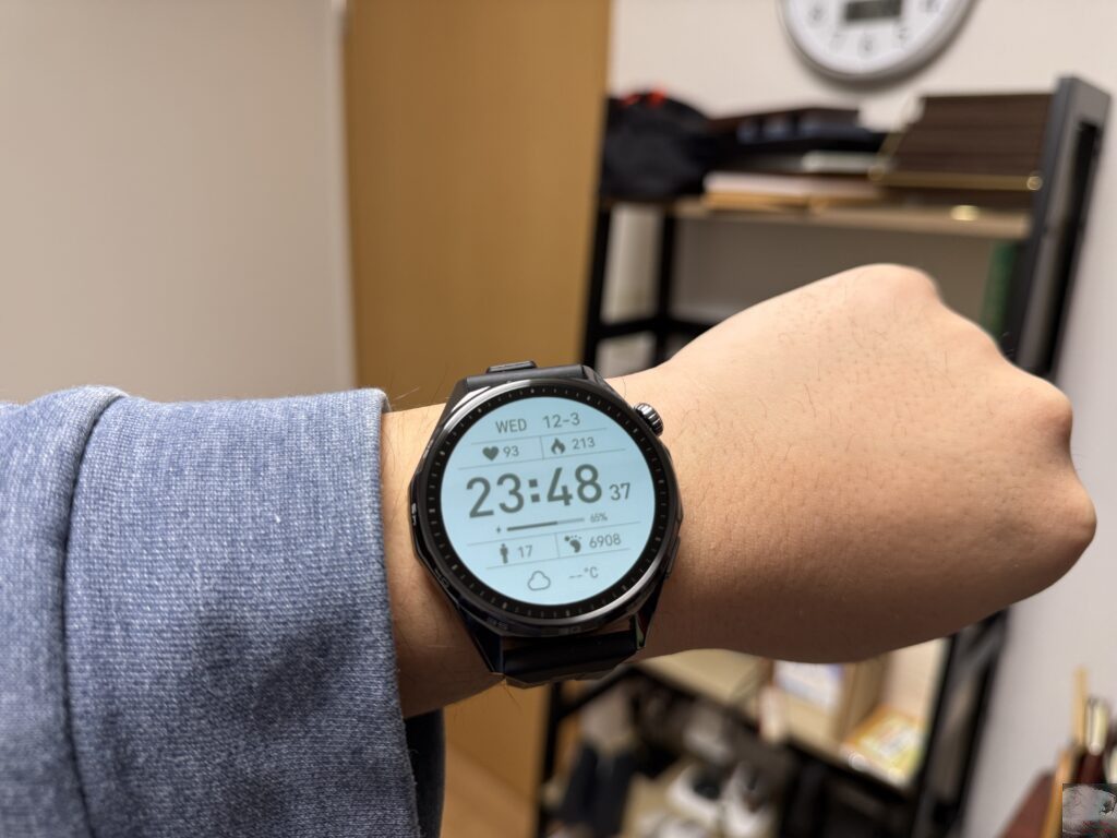 前作のHUAWEI WATCH GT 5と比較して約1.5倍の最大3000ニトに向上したことで屋外での視認性もさらに良くなり、使用していてストレスはありません。