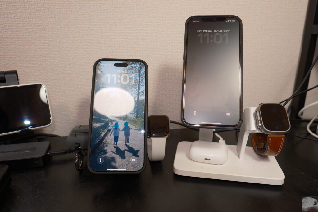 私が今まで愛用してきたESRのワイヤレス充電スタンドと並べてみるとこんな感じです。