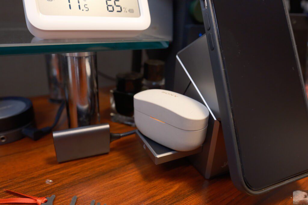 私の環境ではAirPodsを毎日充電するわけではないので、充電不要なシーンでは収納できることでデスクの上のごちゃつき感が解消されていい感じです。