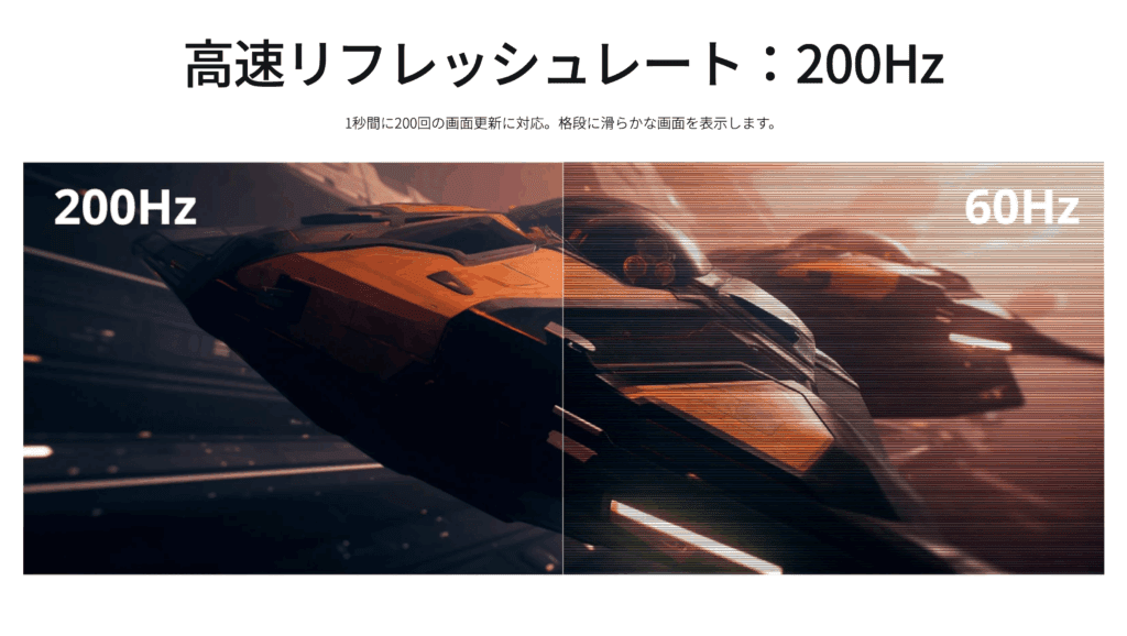 - リフレッシュレート200Hz / MPRT 0.5ms対応でゲームがヌルヌル動く