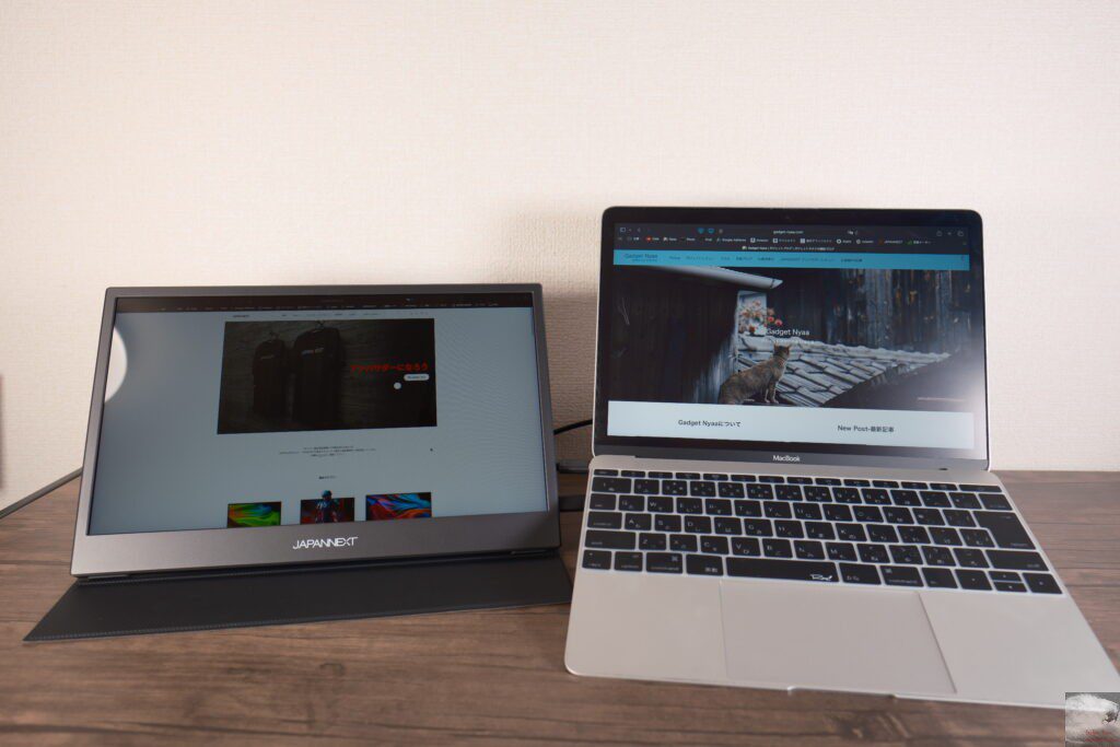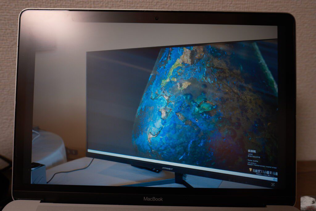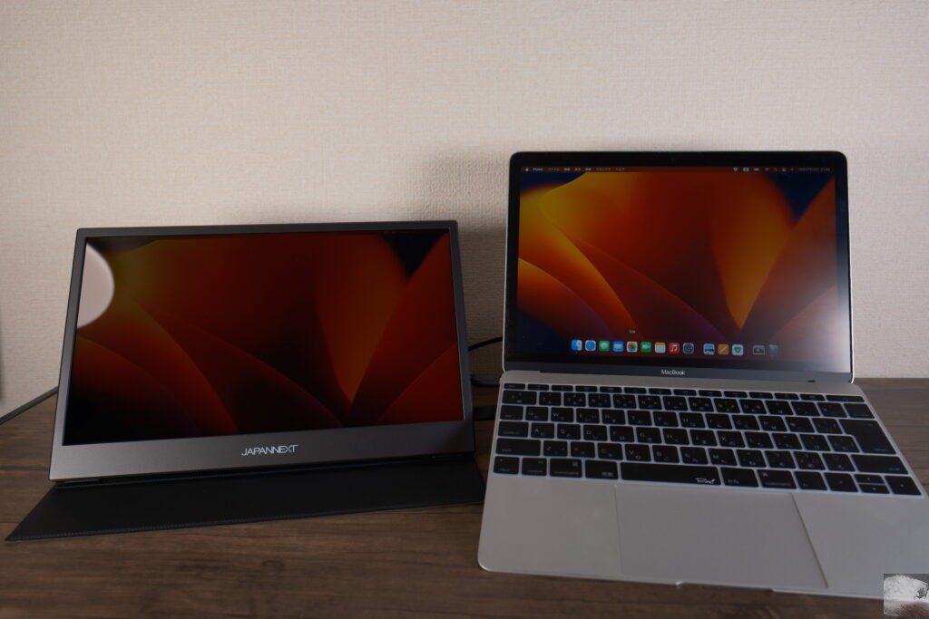 『JN-MD-IQ1301FHDR-N』のディスプレイはMacBookの内蔵ディスプレイと比較して発色が美しく素晴らしい画質でした。