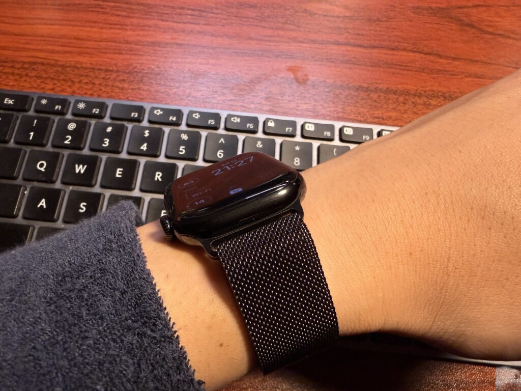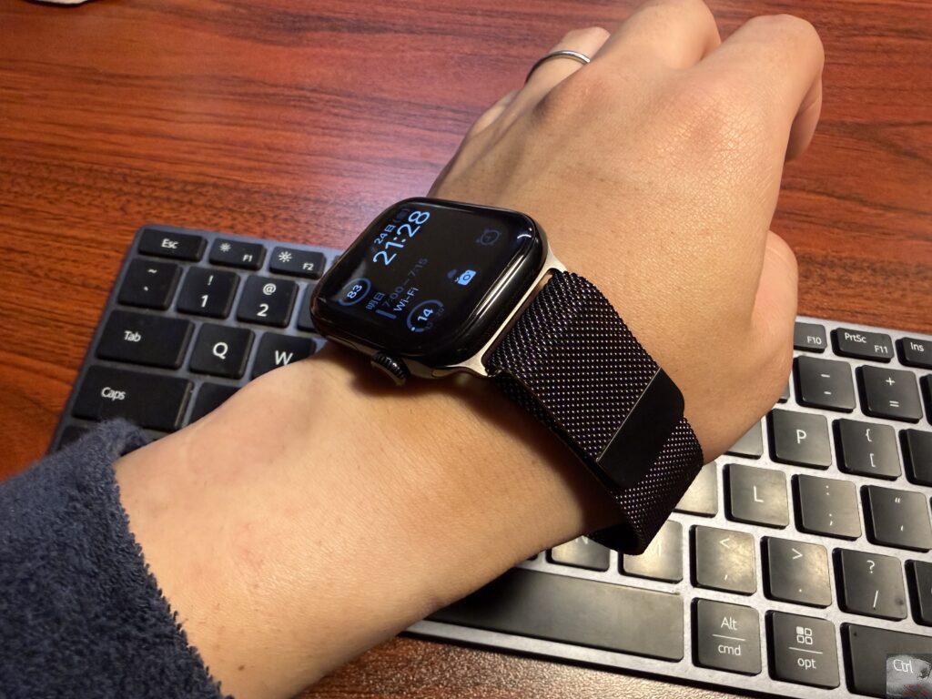 私は両手にApple Watchを着けていることもあり、どうしても目立ってしまうのでバンドのデザインがシンプルである点は重要です。