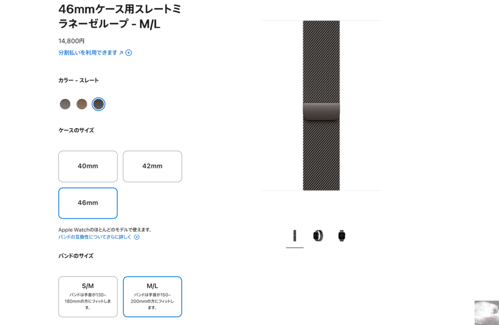 SEの40mmやSeries 10/11の42mmモデルを愛用している男性ユーザーは選択肢がS/Mサイズしかないので手が細い人以外は実際に店頭で試してから購入を検討することを強くお勧めします。