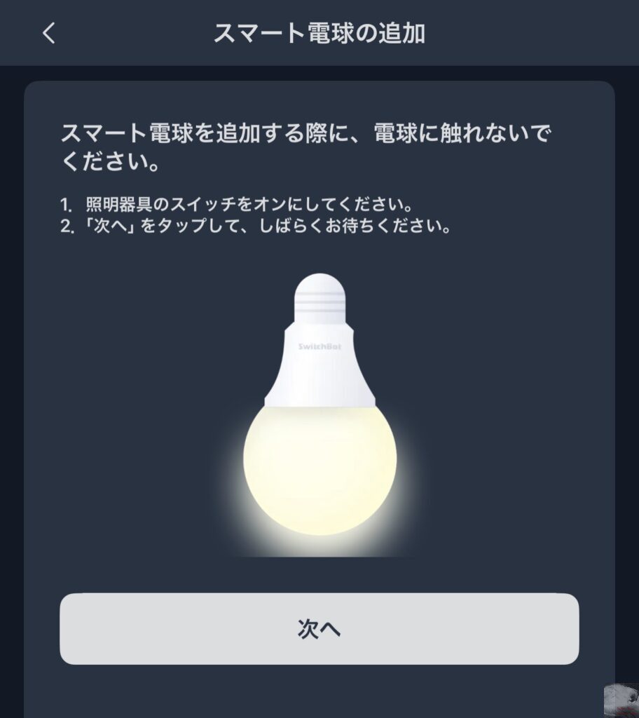 SwitchBot スマート電球のセットアップはいたってシンプルです。