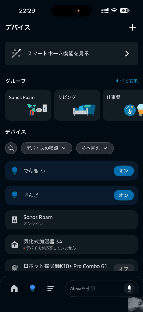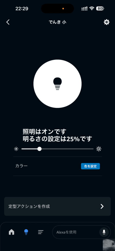 SwitchBot製品を選ぶ理由の一つがAmazon Alexaとの連携ができる点ですが、スマート電球もやはり最高に便利です。