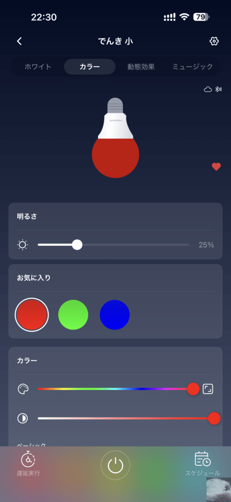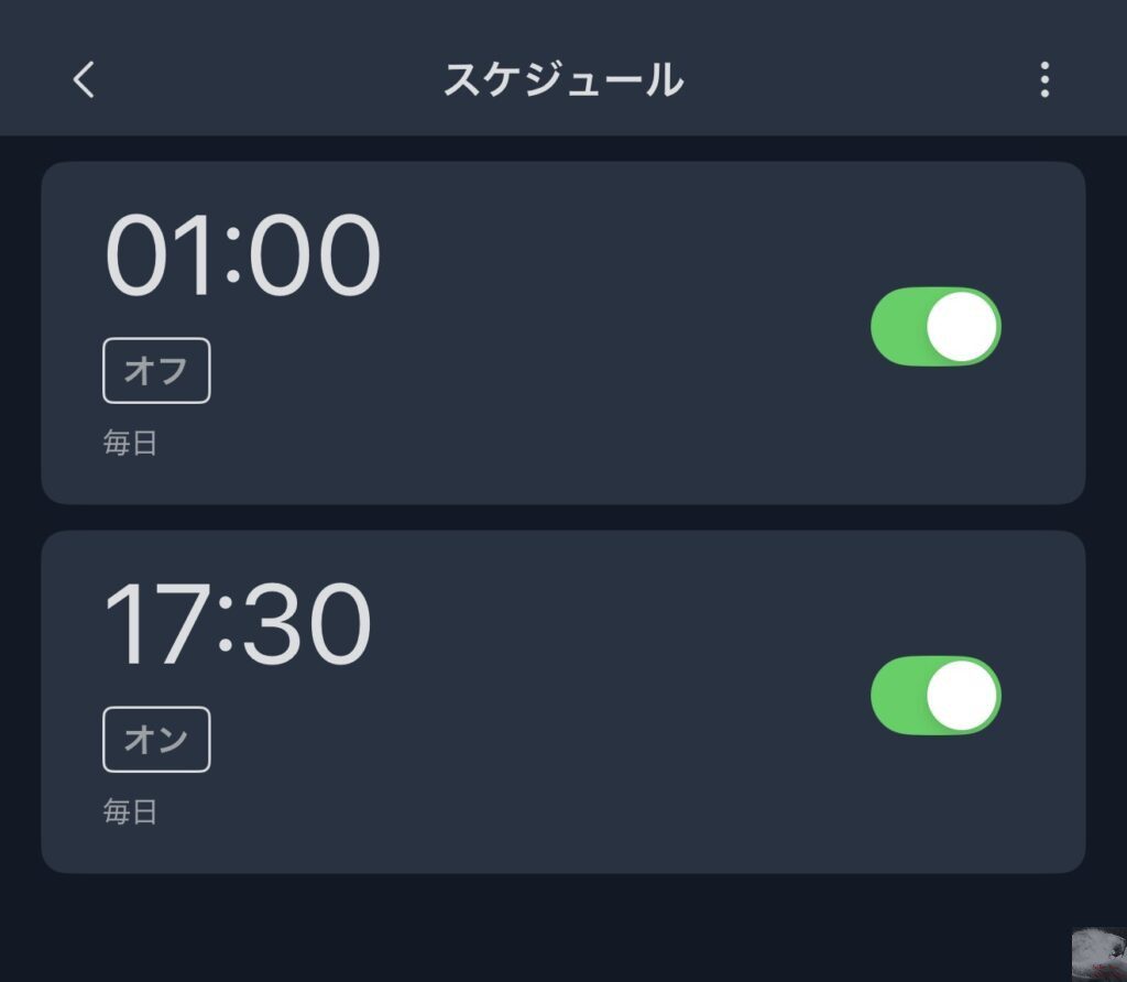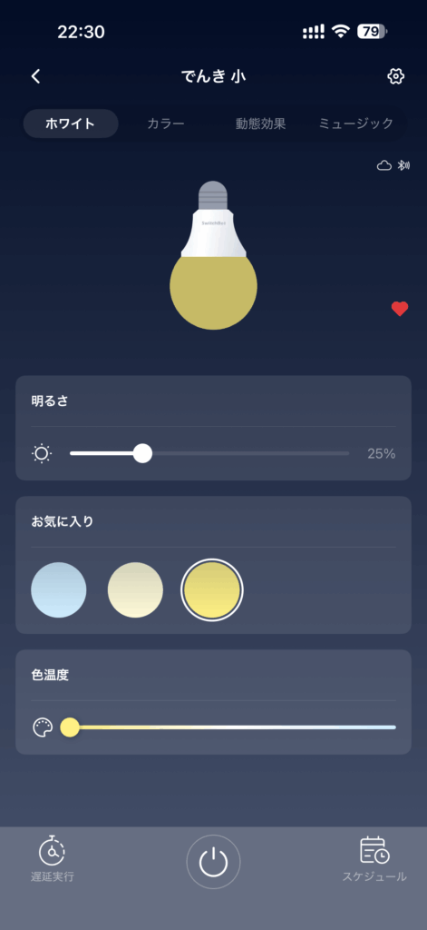 いにしえのIKEAスマート電球にはなく、SwitchBot スマート電球にはあるスケジュール機能はやっぱり便利。
