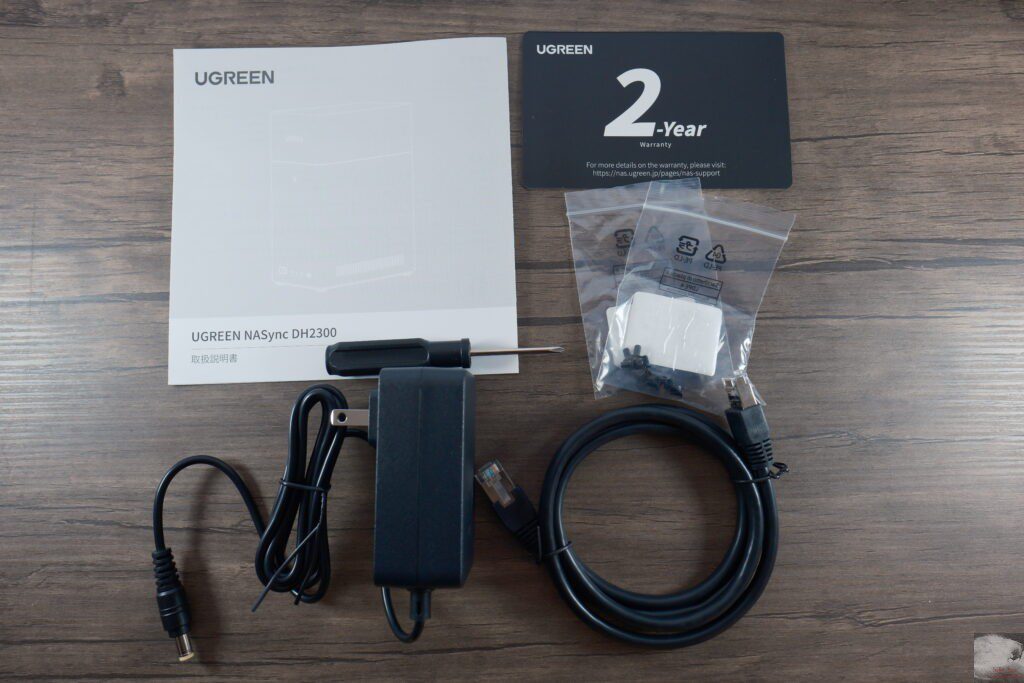 UGREEN NASync DH2300の外観と付属品はこんな感じです。