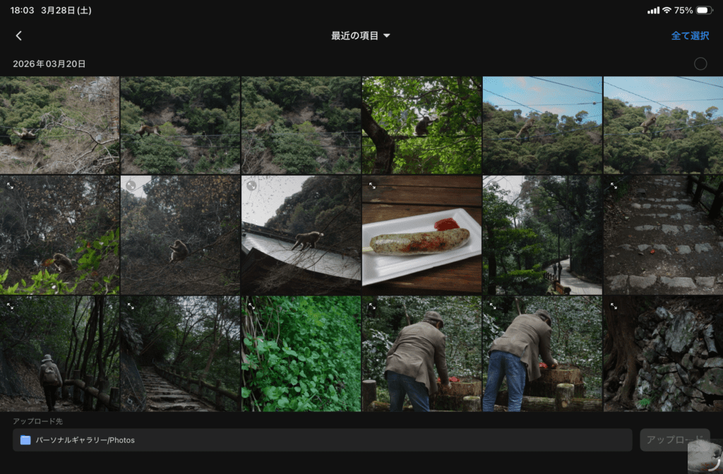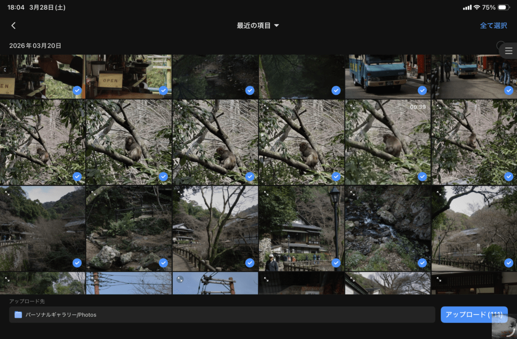 iPadに専用のアプリをインストールし、バックアップしたい写真を選択してアップロード。