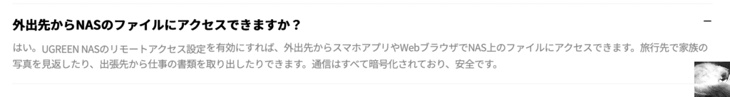 はい。UGREEN NASのリモートアクセス設定を有効にすれば、外出先からスマホアプリやWebブラウザでNAS上のファイルにアクセスできます。旅行先で家族の写真を見返したり、出張先から仕事の書類を取り出したりできます。通信はすべて暗号化されており、安全です