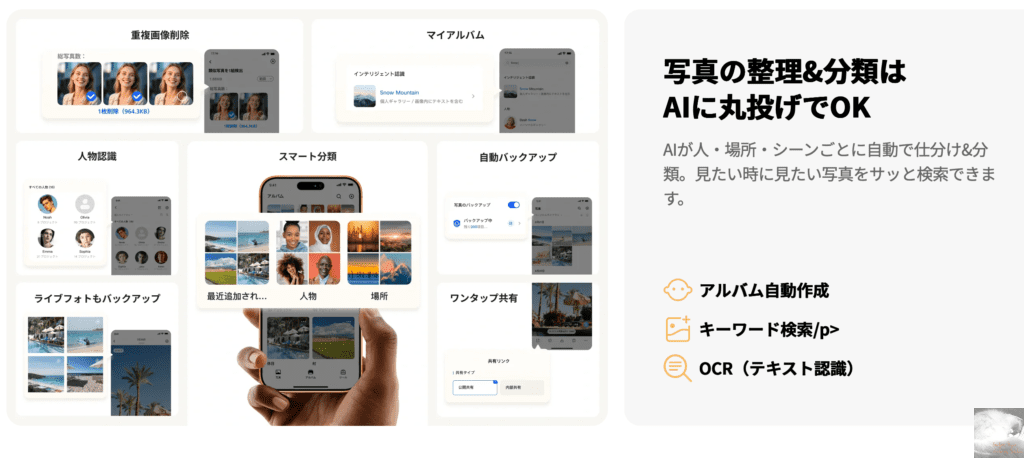 年月日で検索したりアルバムを作成することもできるので違和感なく運用することができました。